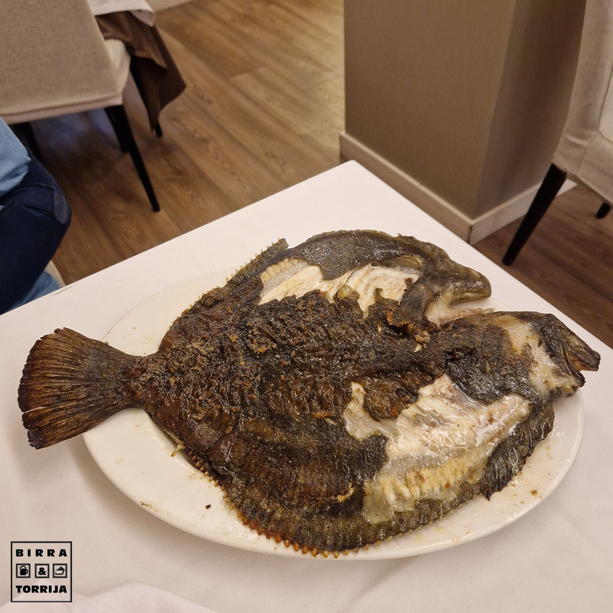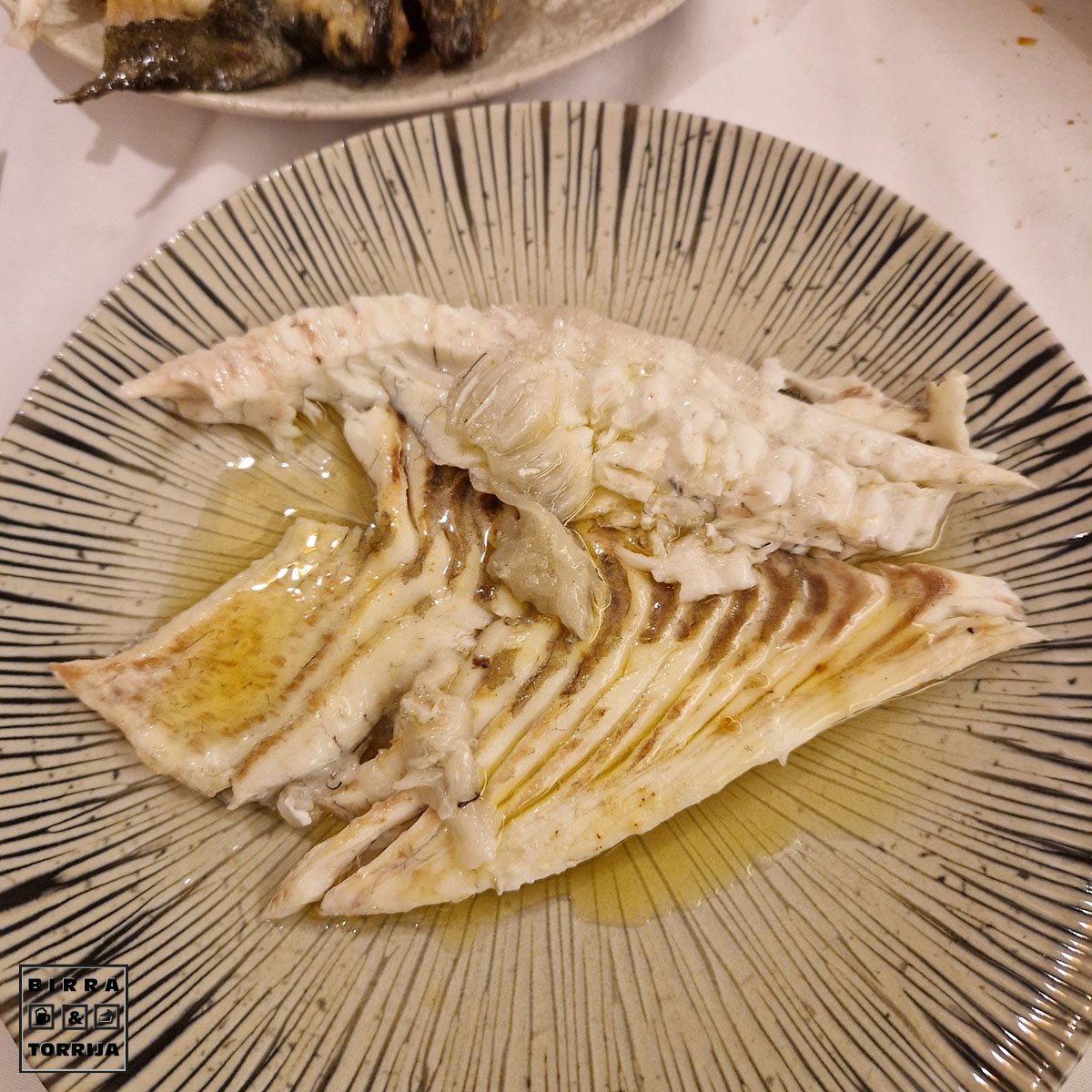 1,7 kg, según la cuenta, es posible. Nos lo creemos porque queremos seguir siendo felices.. Pieza sin presentar, me gusta saludar al bicho antes de ser cocinado, manías mías… El plano pez estaba excelentemente preparado, no tanto el emplatado en mesa, mejorable. Ah, si no lo digo se llevan todos los restos de los cuales en un pescado así sale mucha sustancia aún. Un pecado. Brutal el bicho