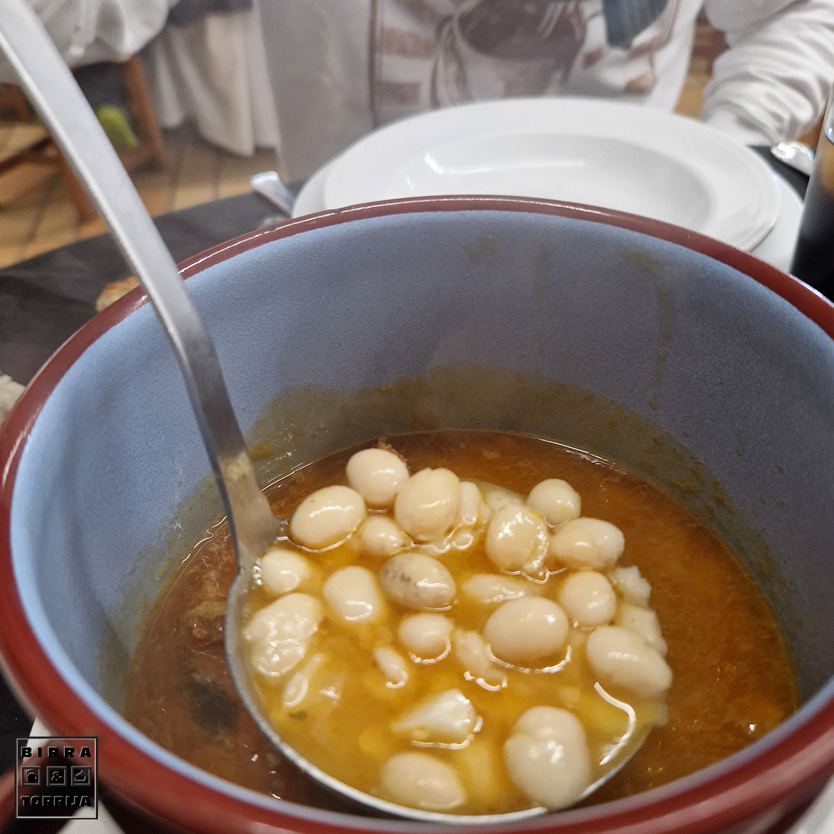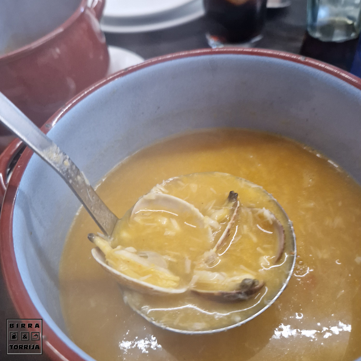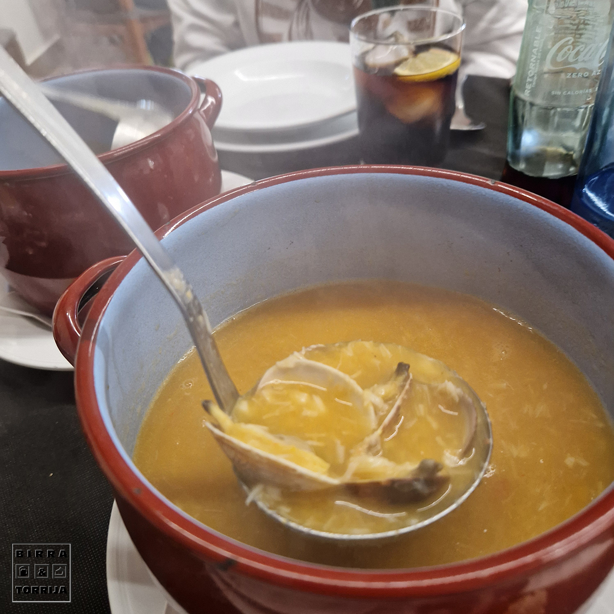 Buen fondo y bien cargada de almejas y trozos de pescado. Las dos raciones daban para 5 platos, una gozada