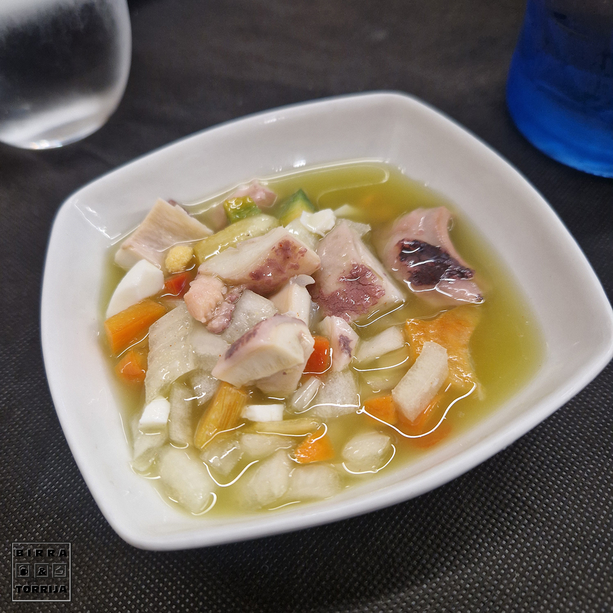 Íbamos tocados. La noche anterior había pasado factura y el cuerpo pedía proteína y caldo como Sandra Barneda llamaba a Montoya por la playa. Mis acompañantes querían carne; yo llevaba un antojo serio de sopa de pescado. Caldo hasta en Agosto. El local cumplía con todo, incluida una amplísima bodega que merecía un mejor estado físico por nuestra parte. Otra vez será.