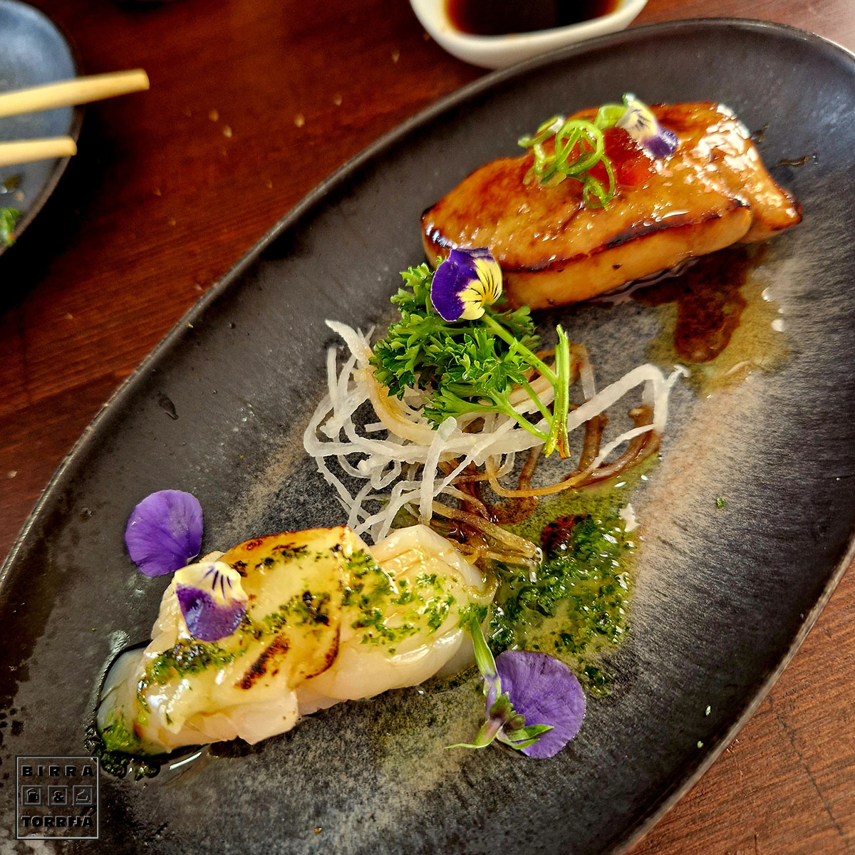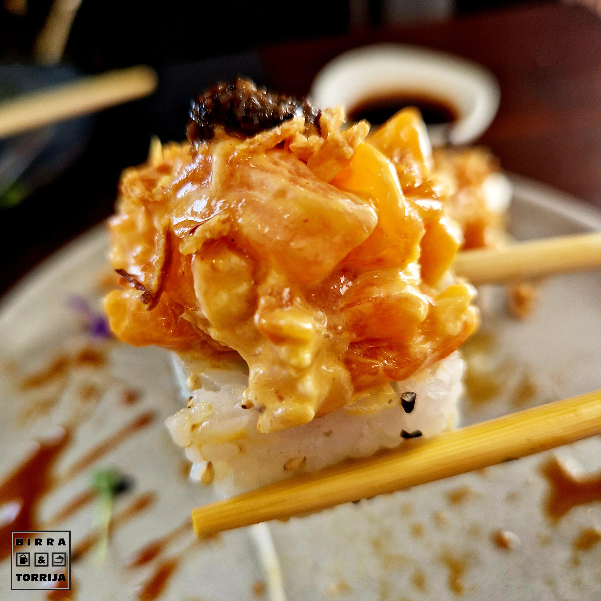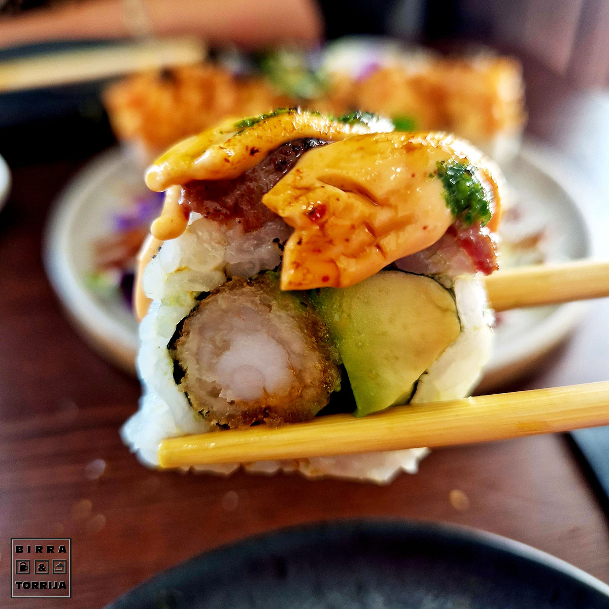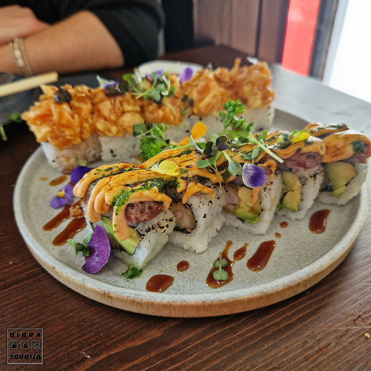 No voy a decir detalles de cada cosa que probamos, resumo, agrupo sensaciones: TODO ESTABA QUE TE CAGAS, bocados grandes, melosidad, sabor, ideal… entra en mi terna de sushi favorito de la capital baturra por su calidad. Punto. Mención especial al tronchaco de foie, costaba ver el arroz debajo, o tienen una granja ilegal de patos y ocas o no lo entiendo.