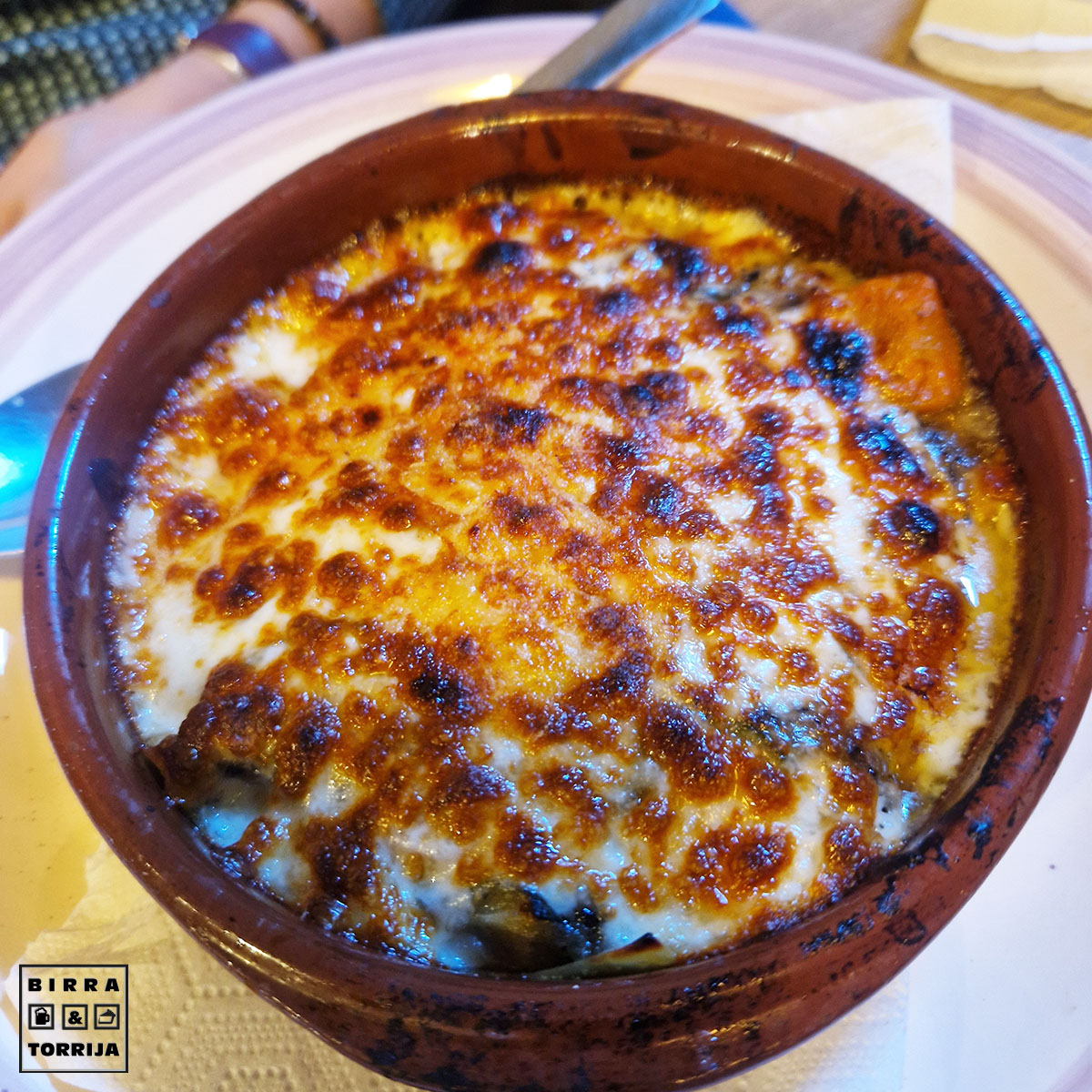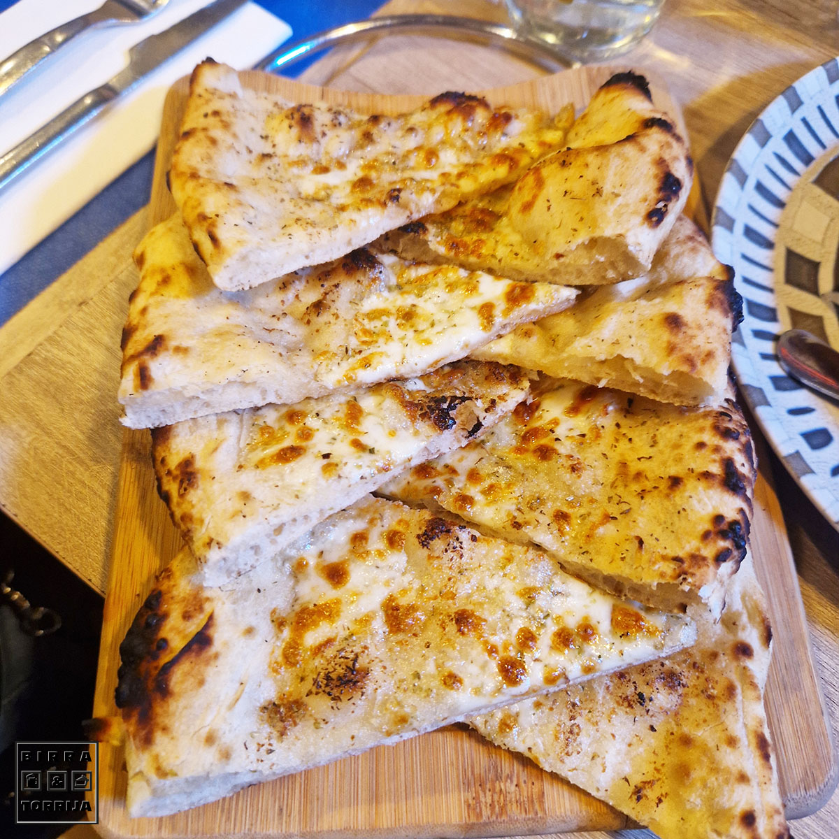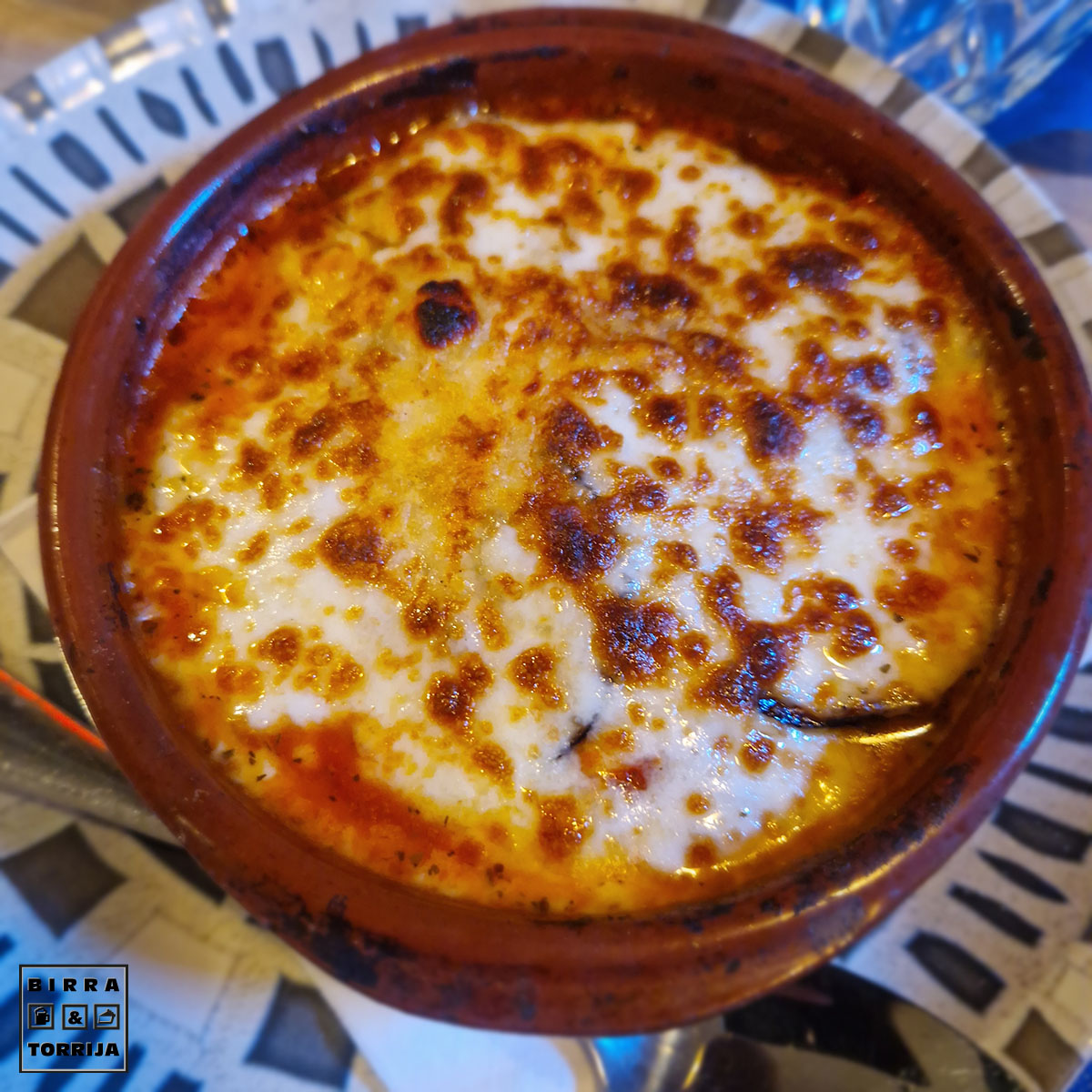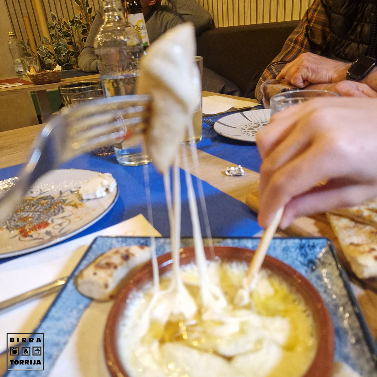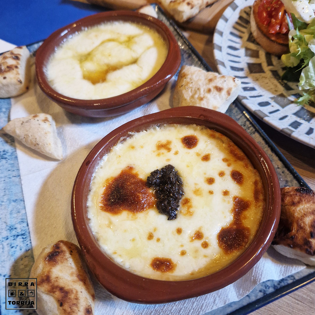 Dos tipos de queso al horno para mojar en pan o en la FOCACIA (6€) que habíamos pedido junto con la tabla