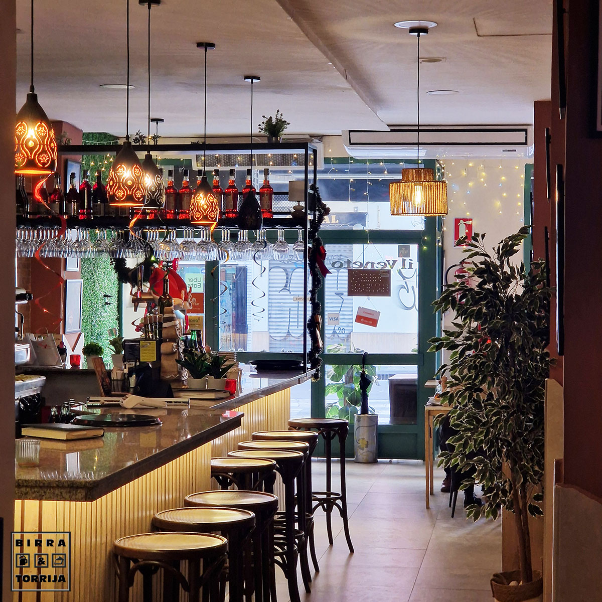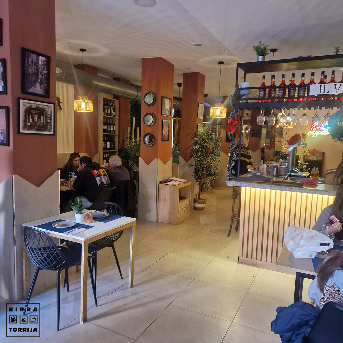 Activo radar zonal de amplio espectro, barrido 360º, pitidos, interferencias… y tras varios intentos fallidos logro sitio en este italiano, del cual hay algún otro por la ciudad.