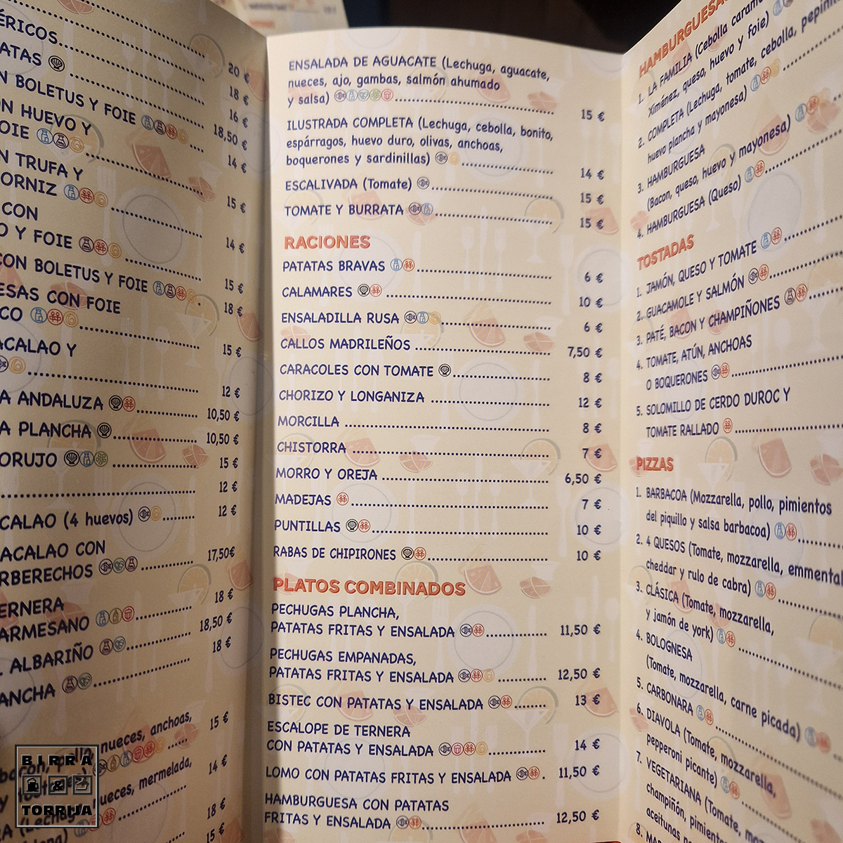 Ambiente con música, tranquilo, había gente pero no ruido. Cogemos la carta… madre mía, un de todo, desde madejas hasta pizzas, desde bocadillos hasta chuletones, desde pescados hasta raciones. No te la acabas en 10 visitas