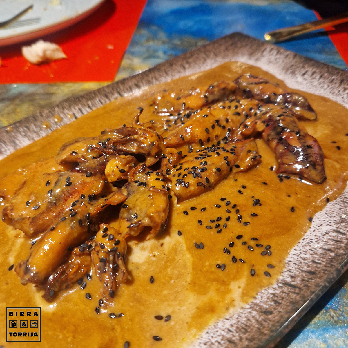 Lo malo: algo justa la ración y uno salió con la pluma aún (o gladio para los puristas). Lo bueno: estaban muy tiernos y ricos, pero la salsa.. ay la salsa. De mojar media barra. Tremenda