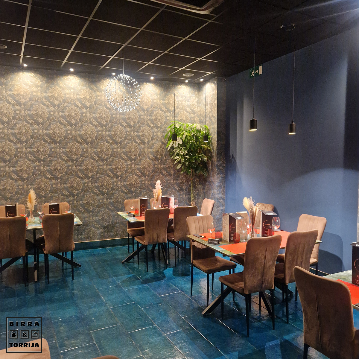 Valdefierro, la parte que parece un tranquilo pueblo, no la de edificios modernos. Entramos y pumba… sitio grande, luminoso, diáfano, decorado con un estilo particular más del este pero majo. Inesperado por estar donde está.