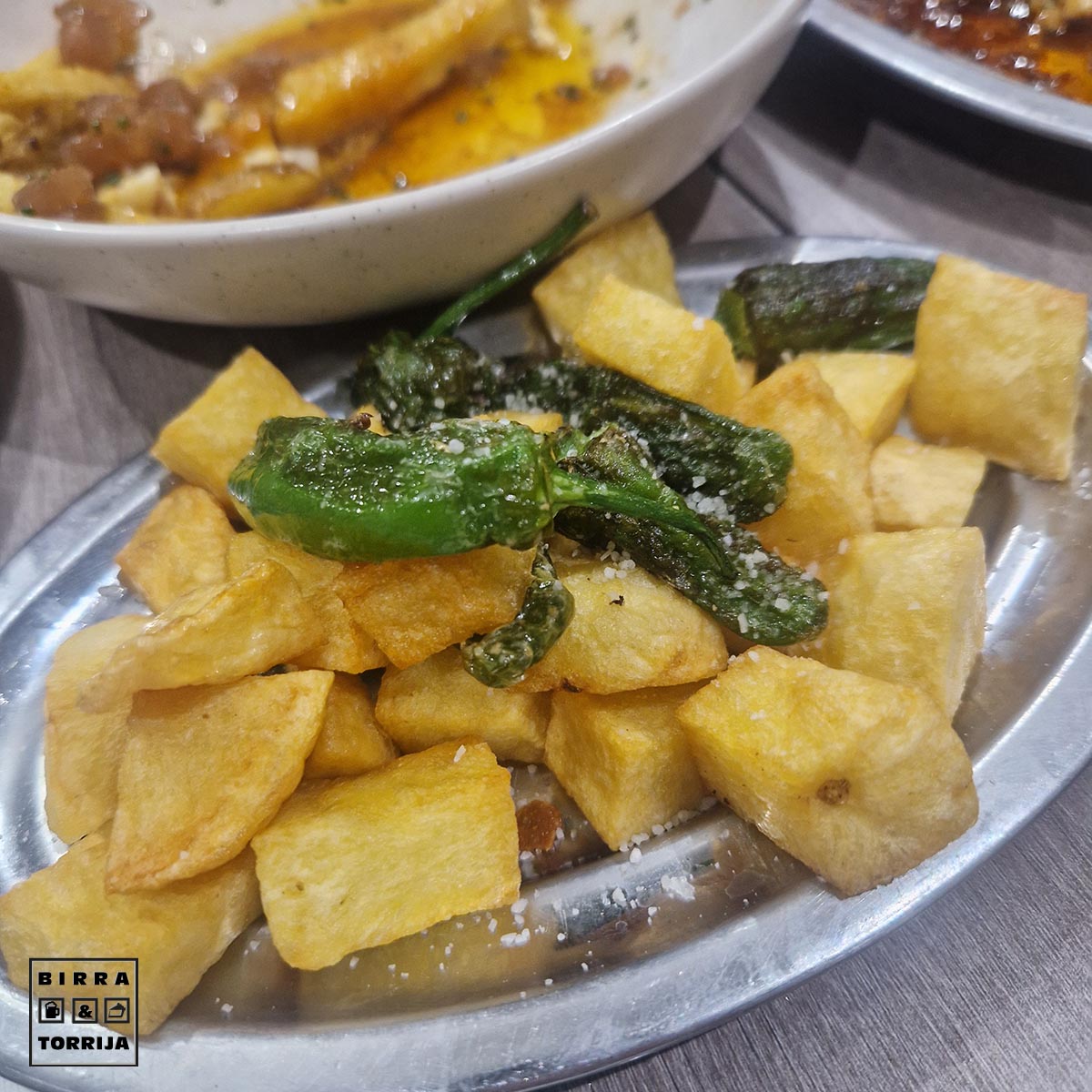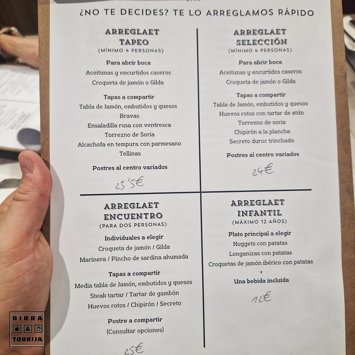 Hay raciones varias, el sitio es muy de eso, muy de compartir… la comida.., y además tienen unos menús con un compendio cerrado de estas raciones al que se debe sumar la bebida. Por eso optamos, concretamente MENÚ SELECCIÓN. Para 6 venían dos platos de cada cosa y, acabamos muy llenitos. Full load man