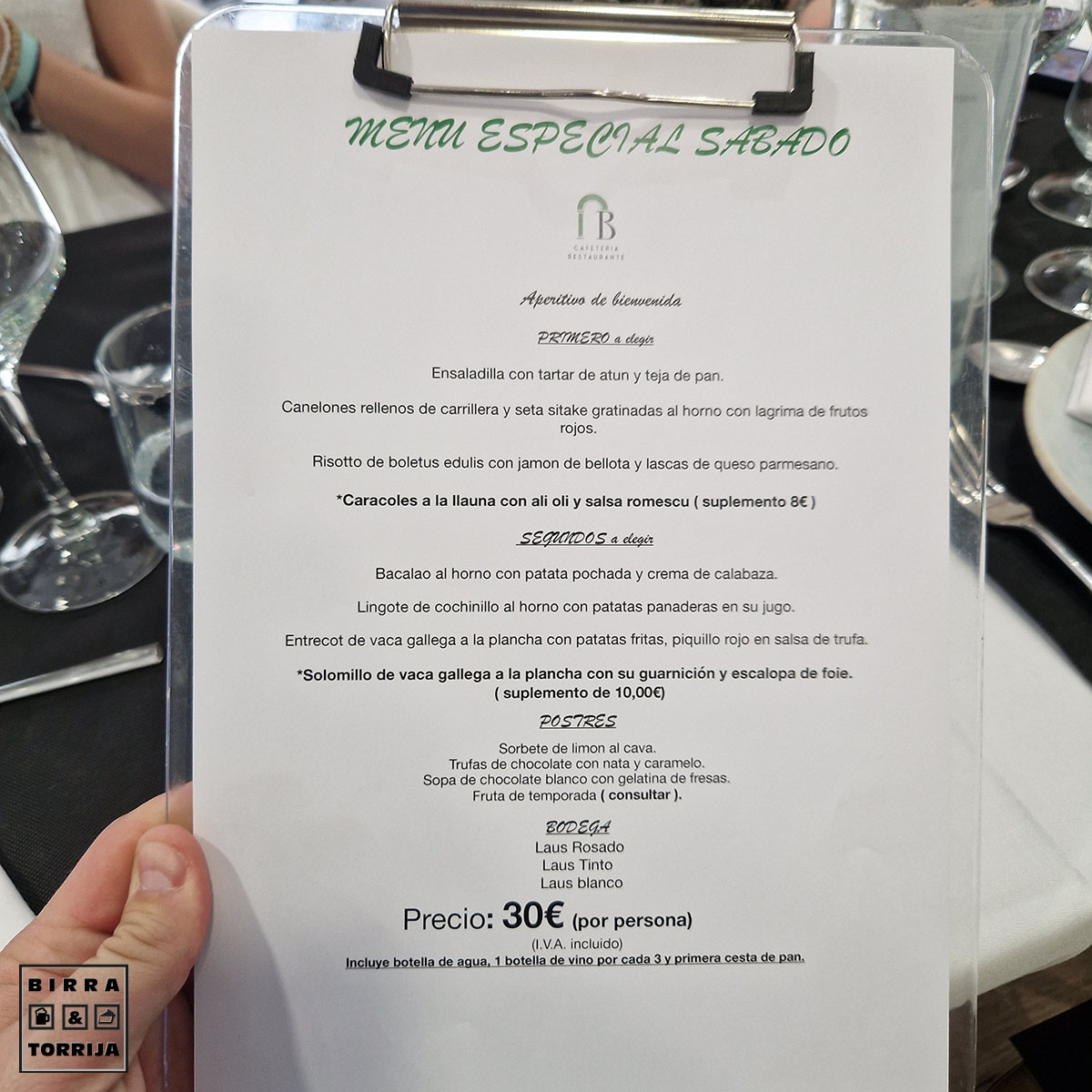 Tienen los fines de semana un menú por 30€ con 4 primeros , 4 segundos, postre, vino agua y, primera (no segunda… ), cesta de pan.