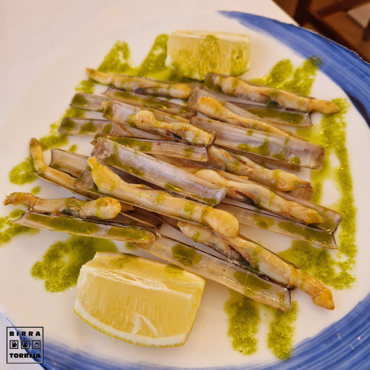 Mini navajas, tamaño dedo, perfectas… tanto que pedimos otra ración . Llámalo prepostre o vicio.