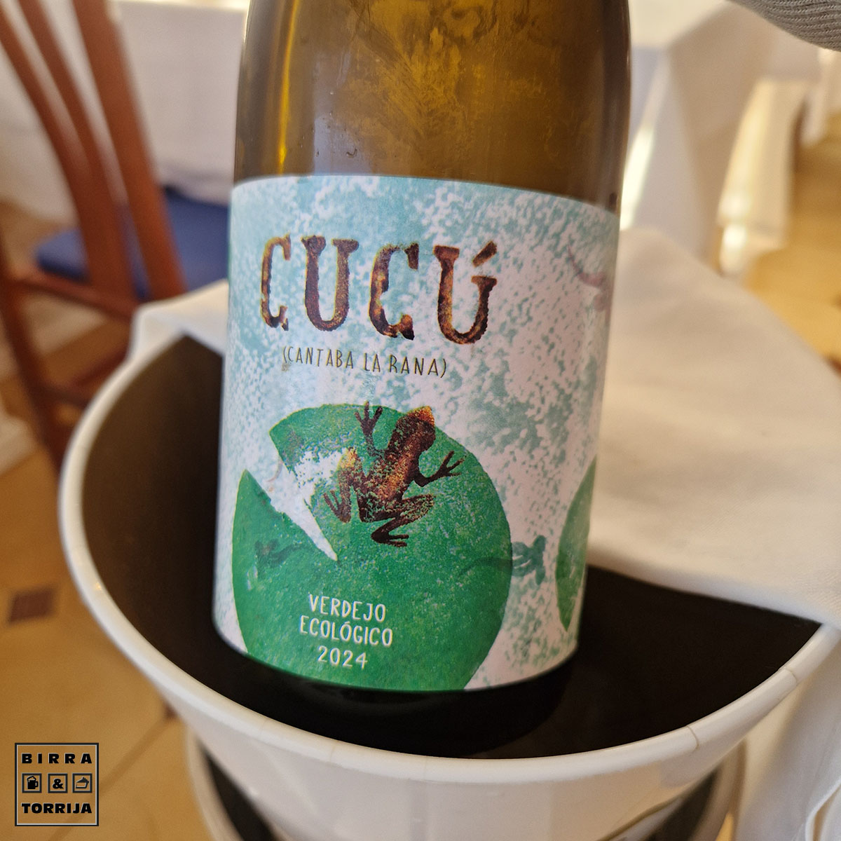 Lo regamos todo con un verdejo ecológico de Bodegas @barcodelcorneta, elegido por su curioso nombre: CUCÚ CANTABA LA RANA, a 23 pavos.